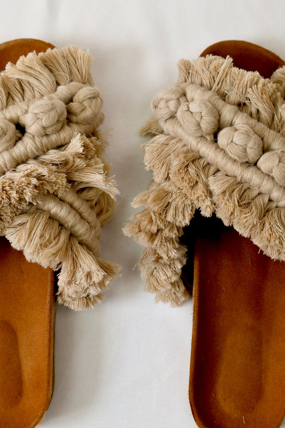 - Handmade cotton upper, gentle on skin and perfect for sensitive feet